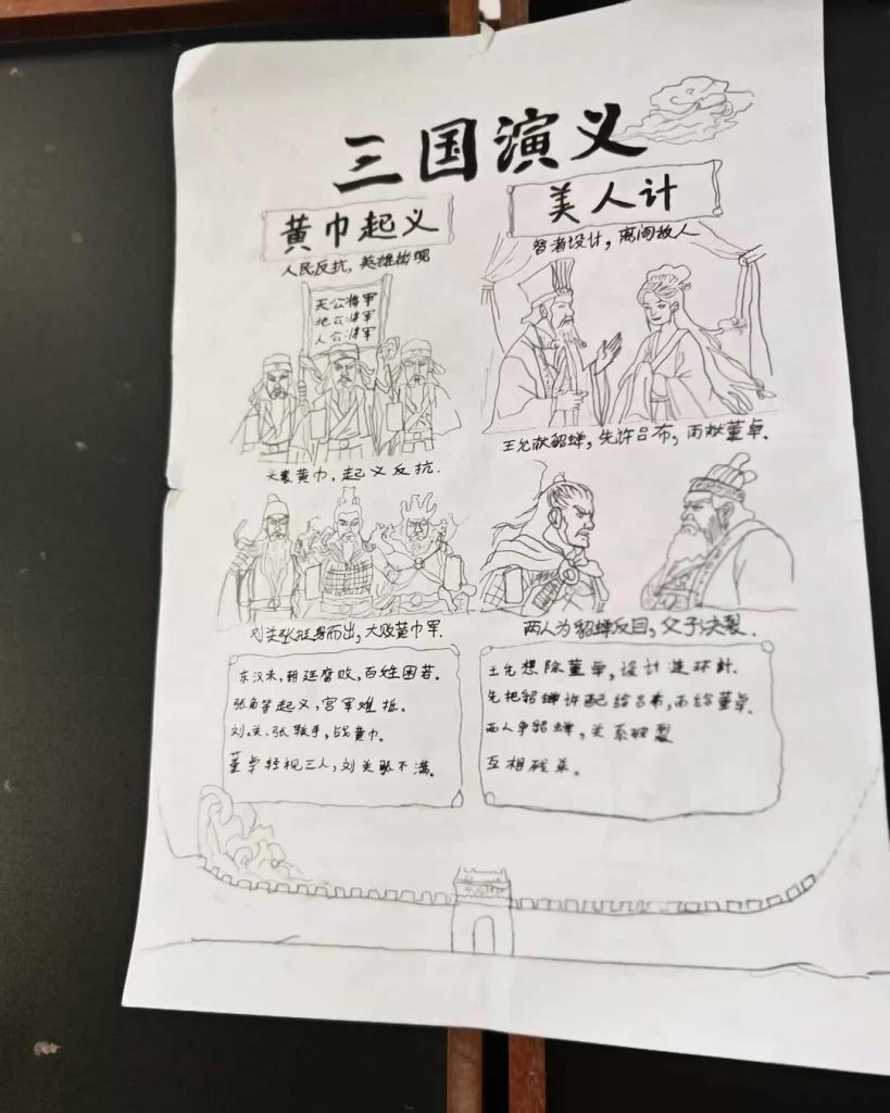本次课程以每天两小时的固定课时,通过多元教学方式带领学生解锁三国故事。课堂上,老师先以典故讲解搭建知识框架,再引导学生用绘画、书写主课本具象化心中的英雄人物,甚至用玩具兵人还原赤壁战场,让历史场景变得可感可知。遇到生僻字词时,学生们以小组互助的形式查字典、记读音,在竞赛与协作中夯实华文基础。从最初对“义薄云天”的茫然,到能声情并茂地演说“过五关斩六将”,学生们的变化清晰可见——原本连“刘备”的“备”都读不准的学生,最终能自信登台,用笃定的声音诠释对英雄精神的理解。
